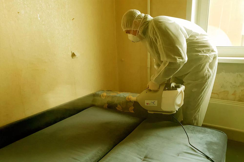2. Горячий туман: квартира дезинфицируется облаком дезинфицирующего вещества. Такой туман оседает постепенно несколько часов, проникая в самые укромные места, и столько же времени воздействует на патогены и источники запахов. Метод показал свою эффективность.